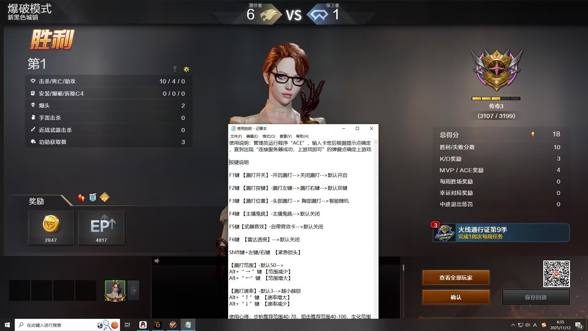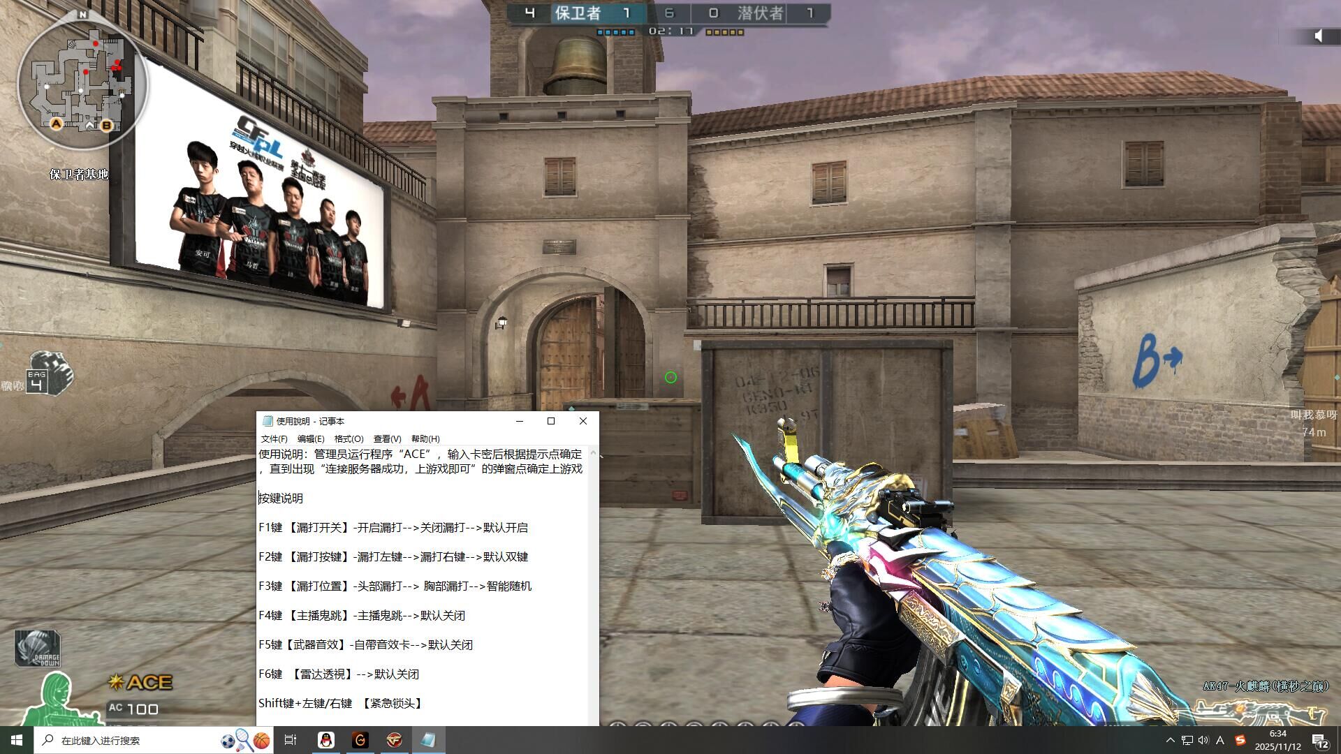 使用说明:管理员运行程序“ACE”,输入卡密后根据提示点确定,直到出现“连接服务器成功,上游戏即可”的弹窗点确定上游戏,点击登录游戏后左上角会弹出一个二次校验卡密的弹窗,输入卡密点确定即可进入游戏